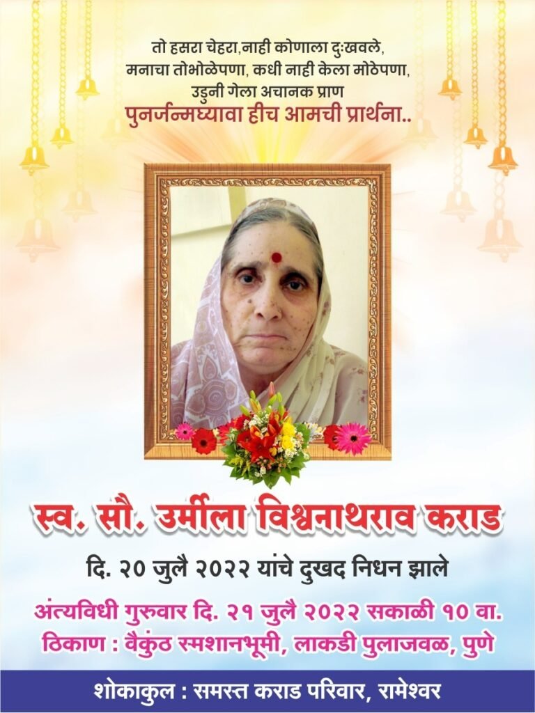 Homeताज्या बातम्या*प्रा. डॉ. विश्वनाथ कराड यांच्या पत्नी,कवयित्री उर्मिला कराड यांचे निधन*