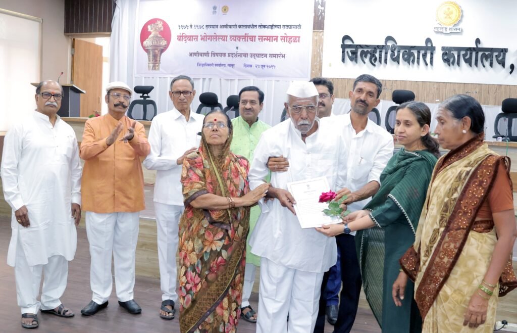आणीबाणीच्या काळात बंदिवास भोगलेल्या व्यक्तींना मुख्यमंत्री देवेंद्र फडणवीस यांच्या स्वाक्षरीचे सन्मानपत्र वितरित करण्यासाठी जिल्हाधिकारी कार्यालयात आयोजित कार्यक्रमात प्रभारी जिल्हाधिकारी करमरकर बोलत होत्या. यावेळी निवासी उपजिल्हाधिकारी केशव नेटके, उपजिल्हाधिकारी संगीता टकले, अहिल्या गाठाळ, गणेश पवार, जिल्हा पुरवठा अधिकारी व्यंकट रावलोड, तसेच आणीबाणीच्या काळात बंदिवास भोगलेले माजी आमदार मनोहर पटवारी, प्रदीप पाटील खंडापूरकर, सुभाष निंबाळकर, अनिल अंदोरीकर, अशोक मठपती आदी उपस्थित होते. आणीबाणीच्या काळात लोकशाहीच्या मूलभूत तत्त्वांचे आणि अधिकारांचे संरक्षण करण्यासाठी अनेकांनी लढा दिला. त्यांना बंदिवास भोगावा लागला.
