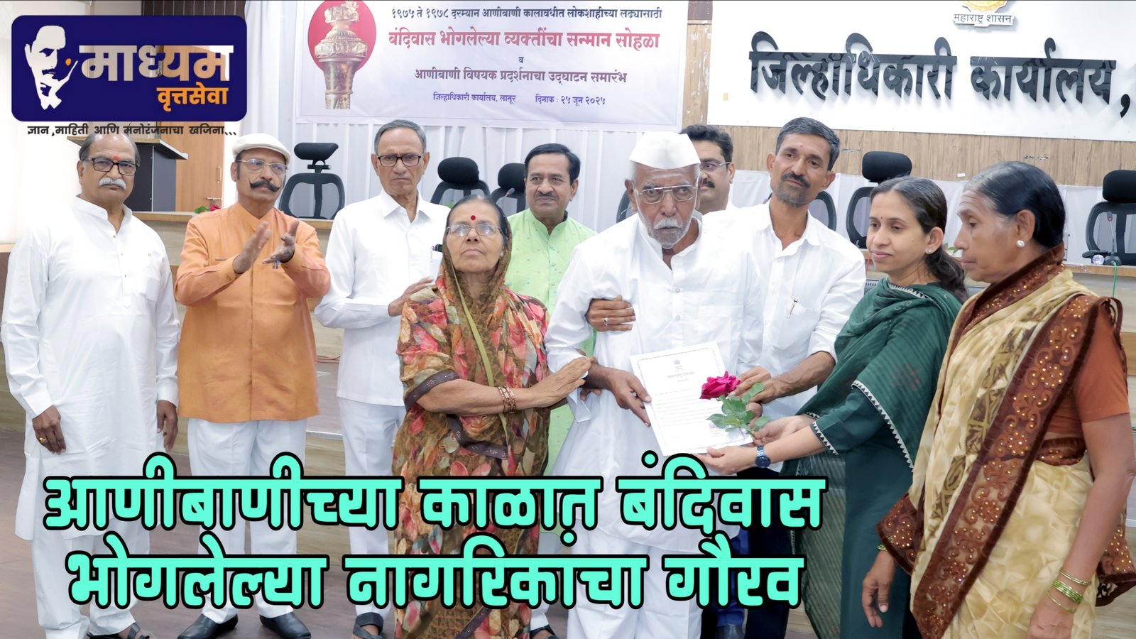 आणीबाणीच्या काळात बंदिवास भोगलेल्या व्यक्तींना मुख्यमंत्री देवेंद्र फडणवीस यांच्या स्वाक्षरीचे सन्मानपत्र वितरित करण्यासाठी जिल्हाधिकारी कार्यालयात आयोजित कार्यक्रमात प्रभारी जिल्हाधिकारी करमरकर बोलत होत्या. यावेळी निवासी उपजिल्हाधिकारी केशव नेटके, उपजिल्हाधिकारी संगीता टकले, अहिल्या गाठाळ, गणेश पवार, जिल्हा पुरवठा अधिकारी व्यंकट रावलोड, तसेच आणीबाणीच्या काळात बंदिवास भोगलेले माजी आमदार मनोहर पटवारी, प्रदीप पाटील खंडापूरकर, सुभाष निंबाळकर, अनिल अंदोरीकर, अशोक मठपती आदी उपस्थित होते. आणीबाणीच्या काळात लोकशाहीच्या मूलभूत तत्त्वांचे आणि अधिकारांचे संरक्षण करण्यासाठी अनेकांनी लढा दिला. त्यांना बंदिवास भोगावा लागला.