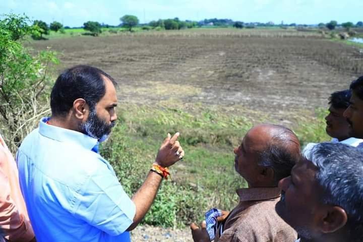 यावेळी शेतकरी व ग्रामस्थांशी संवाद साधताना माजी पालकमंञी तथा आ. संभाजी पाटील निलंगेकर म्हणाले की, नदीकाठच्या जनतेवरचे आलेले संकट आहे, हे संकट मानवनिर्मित असून या जिल्ह्याचे पालकमंत्री वेळीच खबरदारी घेऊन, हवामान खात्याने वर्तविलेल्या अंदाजानुसार आम्ही केलेल्या मागणीप्रमाणे तेरणा व मांजरा नदीतले पाणी पावसापूर्वी टप्प्याटप्प्याने सोडले असते तर, ही वेळ हे संकट नदीकाठच्या शेतकऱ्यावर जनतेवर आले नसते नदीकाठच्या शेतकऱ्याचे माती सह पिके वाहून गेली नसती. पालकमंत्र्यांच्या नाकर्तेपणामुळे शंभर टक्के नुकसान झाले आहे. त्यामुळे सरकारने सरसकट सर्व शेतकर्‍यांना हेक्‍टरी किमान 75 हजार रुपये अनुदान देणे अत्यंत आवश्यक असून ,नियमाप्रमाणे विमा देखील जास्तीत जास्त मिळून दिला गेला पाहिजे. त्यासाठी मी सर्वतोपरी प्रयत्न करणार असून वेळ पडल्यास शासन विरोधात आंदोलन करण्याची माझी भूमिका आहे त्यामुळे शेतकरी त धीर सोडू नये. भाजपाचे नेते सर्व ताकदीने शेतकरी बांधवांच्या पाठीशी उभे आहेत. नुकसान भरपाई बाबत शासन दरबारी पाठपुरावा करून मदत मिळवून देण्यासाठी आपण कटीबद्ध आहोत. असे अभिवचन अतिवृष्टीने शेतीचे व पिकाचे नुकसानग्रस्त झालेल्या शेतकऱ्यांना दिले .