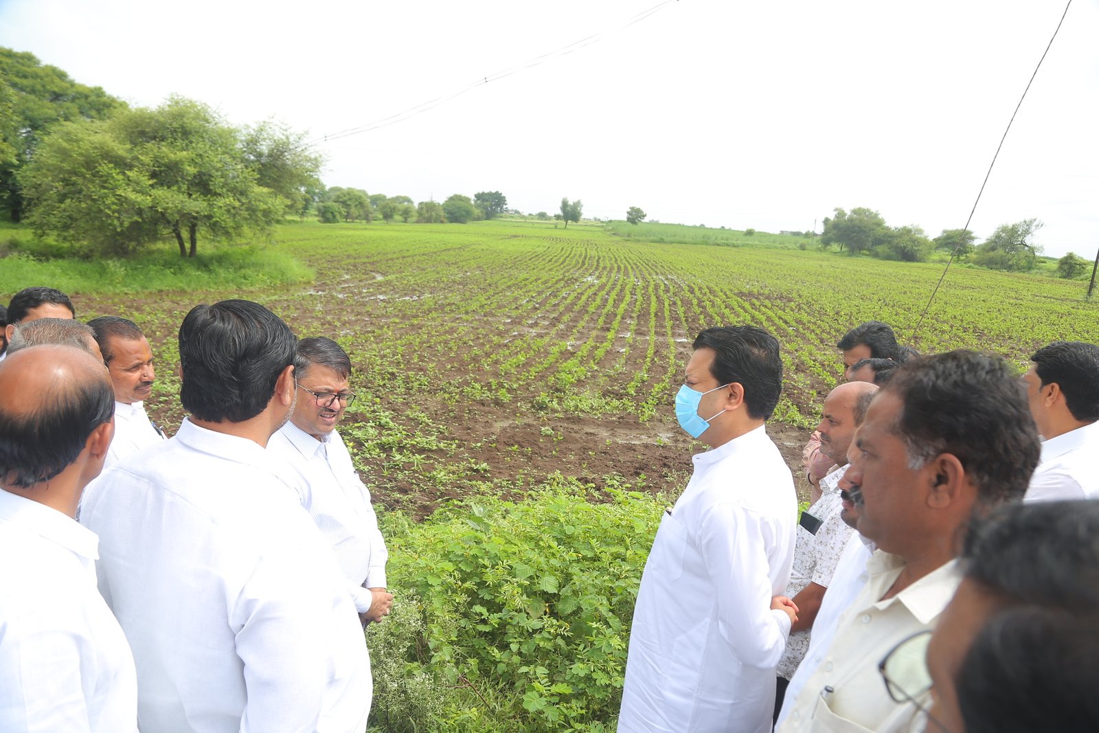 लातूर जिल्ह्यात सतत पडणारा पाऊस, तसेच शिरूर अनंतपाळसह काही ठिकाणी ढगफुटी होऊन मोठया प्रमाणात पाऊस पडला आहे. या पावसामुळे मोठया प्रमाणात पिके बाधीत झाली आहेत. नुकसान झालेल्या पिकांची पाहणी केले नंतर संबंधित अधिकाऱ्यांना नुकसान झालेल्या सर्व ठिकाणच्या पिकांचे तात्काळ पंचनामे करून शासनाकडे मदत देण्यासाठी प्रस्ताव सादर करावा, गोगलगायच्या प्रादुर्भावाने मोठ्या प्रमाणावर नुकसान झाले आहे त्याचाही पंचनामा करण्याच्या कामाला गती द्यावी, पीक विमा भरला असेल त्यांना व ज्यांनी नाही भरला त्यांनाही नुकसान भरपाई द्यावी. शेतकऱ्यांचे झालेले नुकसान मोठे आहे याकरीता शेतकऱ्यांना प्रति हेक्टरी बागायती क्षेत्रासाठी १ लाख रुपये तर कोरडवाहू शेतीसाठी ५० हजार रुपयाची मदत देण्यात यावी, अशी शासनाकडे काँग्रेसची मागणी आहे असे सांगितले. राज्य शासनाने ही मदत तात्काळ करावी, अशी आग्रही मागणी देखील माजी मंत्री आमदार अमित विलासराव देशमुख यांनी केली आहे. या प्रसंगी उपस्थित शेतकऱ्यांशी संवाद साधून त्यांच्या अडीअडचणी समजून घेऊन अतिवृष्टीने नुकसान झालेल्या शेतकऱ्यांना मदत मिळवून देण्यासाठी सातत्याने सरकारकडे आपण पाठपुरावा करू अशी ग्वाही दिली.