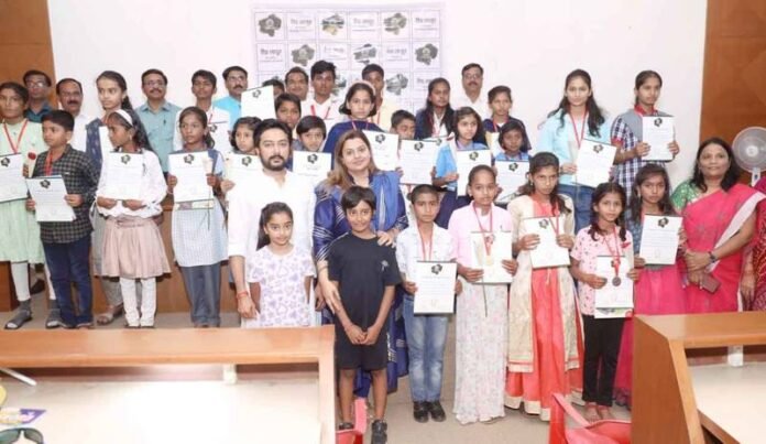 लातूर :– रेणापूर,लातूर व औसा तालुक्यातील विद्यार्थ्यांसाठी “रीड लातूर” उपक्रमांतर्गत घेण्यात आलेल्या निबंध स्पर्धेतील विजेते विद्यार्थ्यांना प्रमाणपत्र, मेडल व रायटिंग बुक चे वाटप रीड लातूर उपक्रमाचे संस्थापक आ.धिरज विलासराव देशमुख व सौ.दीपशिखाताई धिरज देशमुख यांच्या हस्ते करण्यात आले