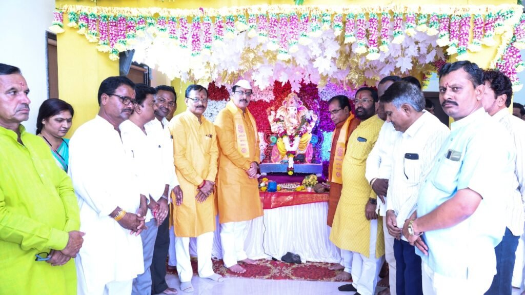 लातूर दि.३१– सुखकर्ता दुखहर्ता विघ्नहर्ता आद्य देवता श्री गणेशाची भाजपाचे जिल्हाध्यक्ष आ. रमेशआप्पा कराड यांच्या शुभहस्ते बुधवार रोजी गणेश चतुर्थी दिनी मोठ्या उत्साहाच्या आणि मंगलमय वातावरणात भाजपाच्या संवाद कार्यालयात प्रतिष्ठापना करण्यात आली.