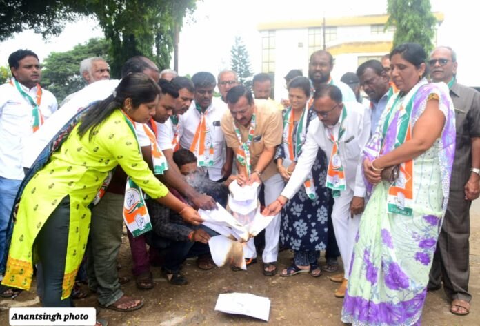 यावेळी जोरदार घोषणाबाजी करत वीज बिलांची होळी करण्यात आली.तसेच सदर मागण्यांचे निवेदन कार्यकारी अभियंता प्रशांतकुमार राठी यांना देण्यात आले.तसेच या मागण्यांबाबत तातडीने कार्यवाही न झाल्यासकाँग्रेस पक्षाच्यावतीने तिव्र आंदोलन करण्याचा इशारा देण्यात आला.