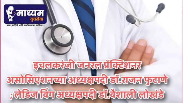 *इचलकरंजी जनरल प्रॅक्टिशनर असोसिएशनच्या अध्यक्षपदी डॉ.राजन फुटाणे ; लेडिज विंग अध्यक्षपदी डॉ.वैशाली लोखंडे*