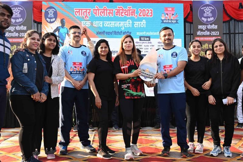 तरुणांमध्ये वाढत असलेल्या व्यसनाधीनतेचे प्रमाण थांबविण्यासाठी व त्या संदर्भात जनजागृती व्हावी याकरिता लातूर पोलिसां कडून आज दिनांक 3 डिसेंबर 2023 रोजी पहाटे 05 वाजता मॅरेथॉन स्पर्धेचे भव्य आयोजन करण्यात आले होते.