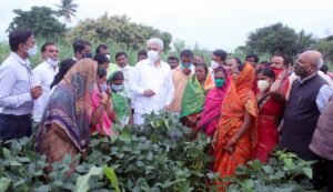 यावेळी कृषि मंत्री भुसे शेतक-यांना बोलतांना म्हणाले की, सोयाबीन पीक घेणाऱ्या सर्वच शेतकऱ्यांनी आधुनिक तंत्रज्ञनाच्या आधारे शेती करुन चांगले पीक घेऊन आर्थिक उन्नती करावी. कृषि विषयक शासकीय योजनेत महिला बचत गटांना प्राधान्य देण्यात येणार आहे. पंतप्रधान पीक विमा योजनेत अधिकाधिक शेतकऱ्यांना लाभ होण्यासाठी विम्याचे नियम बदलण्याविषयक कार्यवाही शासन स्तरावरुन सुरु आहे. तसेच त्यांनी शेतामध्ये काम करणाऱ्या महिला कामगार मजूरांशी संवाद साधून त्या अडीअडचणी जाणून घेतल्या व संबंधितांना योग्य त्या सूचना कृषि मंत्री दादाजी भुसे यांनी दिल्या.