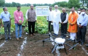 लातूर,दि.16 (जिमाका) वसंतराव नाईक मराठवाडा कृषि विद्यापीठ परभणी यांच्या गळीत धन्ये संशोधन केंद्र, लातूर येथे जाऊन सोयाबीन पीक पाहणी, सोयाबीन पिकावर कीड लागू नये व शेतीतील कामे जलद गतीने होण्यासाठी ड्रोन यंत्राद्वारे फवारणी, तसेच चिकुंद्रा येथील संगिता संदीपन घाडगे यांच्या शेतातील सेंद्रीय शेती आणि सोयाबीन पिकाची पाहणी कृषि, माजी सैनिक कल्याण मंत्री दादाजी भुसे यांनी केली.