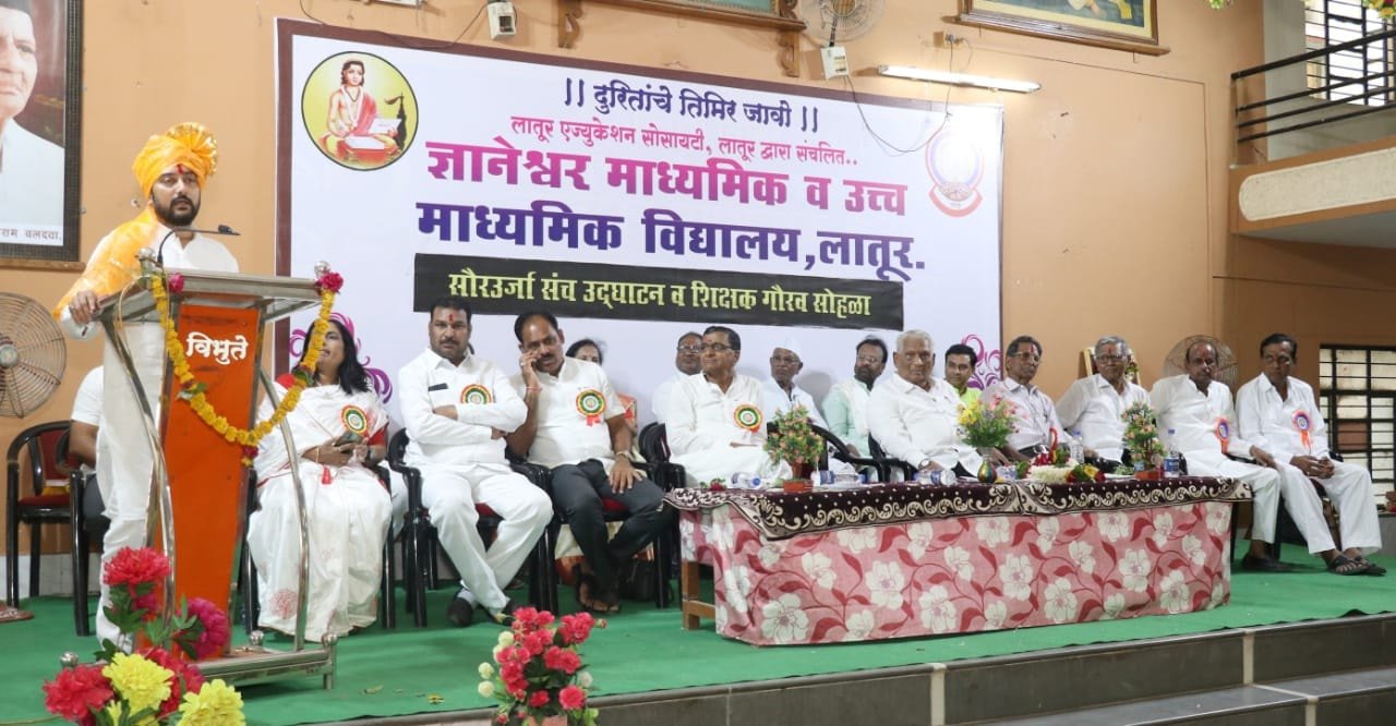 महाराष्ट्र दिनाचे औचित्य साधून लातूर एज्युकेशन सोसायटी संचलित ज्ञानेश्वर विद्यालयात उभारण्यात आलेल्या सौर ऊर्जा संचाचे आमदार श्री. धिरज देशमुख यांच्या हस्ते उद्घाटन झाले. त्यानंतर शाळेतील गुणवंत शिक्षकांचा गौरव करण्यात आला. यावेळी ते बोलत होते.