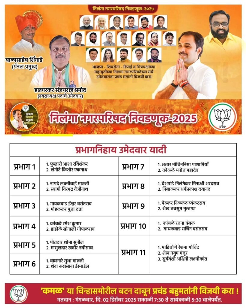 लातूर/प्रतिनिधी :जगातील सर्वात मोठा राजकीय पक्ष बनवत विधानसभा निवडणुकीत घवघवीत यश मिळवून देण्यात कार्यकर्त्यांचे मोठे योगदान असून यासाठी त्यांनी अपार मेहनतही घेतली आहे. कार्यकर्त्यांच्या संघटन शक्तीमुळेच भाजपा नंबर वन आहे. आता त्याच कार्यकर्त्यांच्या म्हणजेच स्थानिक स्वराज्य संस्था निवडणूका होवू घातलेल्या आहेत. या निवडणूकांना महायुती म्हणून जरी सामोेरे जात असलो तरी महायुतीतील घटक पक्षांनी कार्यकर्त्यांवर केलेला अन्याय खपवून घेणार नाही, असे सांगत महायुतीतील घटक पक्षांना सत्तेचा वाटा देऊ मात्र, कार्यकर्त्यांनी उभा केलेल्या पक्ष संघटनमध्ये कोणतीही तडजोड होणार नाही , असे सांगून आम्ही कार्यकर्त्यांच्या निवडणूकीत तन, मन, धनाने खंबीरपणे त्यांच्या पाठीशी उभे राहणार असल्याची ग्वाही माजी मंत्री तथा जिल्हा निवडणूक प्रभारी आ. संभाजी पाटील निलंगेकर यांनी दिली .