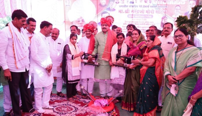 पंतप्रधान माननीय नरेंद्रजी मोदी यांच्या जन्मदिनानिमित्त संपूर्ण देशभर भाजपाच्या वतीने सेवा पंधरवाडा साजरा केला जात असून अहमदपूर येथे भाजपाचे जिल्हा सरचिटणीस अशोककाका केंद्रे आणि माजी सभापती आयोध्याकाकू केंद्रे यांच्या वतीने आयोजित करण्यात आलेल्या रक्तदान शिबीर, निराधार महिलांना शिलाई मशिनचे वाटप, गरीब कुटुंबातील मुलींचा कन्यादान योजनेतून विमा, गरिब कुटुंबाना जीवन उपयोगी साहित्याचे वाटप, विद्यार्थ्यांना शालेय साहित्याचे वाटप, सफाई महिला कामगारांना साडी चोळीचे वाटप, तीन हजार वृक्षारोपणाचा शुभारंभ भाजपाचे जिल्हाध्यक्ष आ. रमेशअप्पा कराड यांच्या हस्ते शुक्रवारी झाला त्यावेळी ते बोलत होते. कार्यक्रमाच्या अध्यक्षस्थानी भाजपचे प्रदेश उपाध्यक्ष विनायकराव पाटील होते. यावेळी प्रमुख पाहुणे म्हणून किसान मोर्चाचे प्रदेश सरचिटणीस दिलीपराव देशमुख, जिल्हा सरचिटणीस त्र्यंबकआबा गुट्टे, विक्रमकाका शिंदे, माजी सभापती भारत चामे, प्रदेश भाजपाचे अमोल पाटील, महिला आघाडीच्या जिल्हाध्यक्षा रेखाताई तरडे, बालाजी गुट्टे, राधाकिशन तेलंग, राम बेल्लाळे, जयप्रकाश केंद्रे, सिद्धार्थ सूर्यवंशी, अंकुश जनवाडे, विलास सूर्यवंशी, राजू खंदाडे, माधव केंद्रे यांच्यासह अनेकांची प्रमुख उपस्थिती होती. कार्यक्रमाच्या सुरुवातीस आ. कराड यांच्या हस्ते केक कापून पंतप्रधान नरेंद्रजी मोदी यांना जन्मदिनानिमित्ताने शुभेच्छा दिल्या.