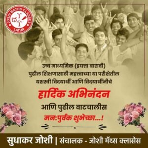 जाहिरातमहाराष्ट्रशैक्षणिकजाहिरातBy Gopal Kulkarni - August 4, 20210388ShareFacebookTwitterPinterestWhatsAppLinkedinEmailPrintTelegram बारावीच्या विद्यार्थ्यांचे अभिनंदनशुभेच्छा : सुधाकर जोशी
