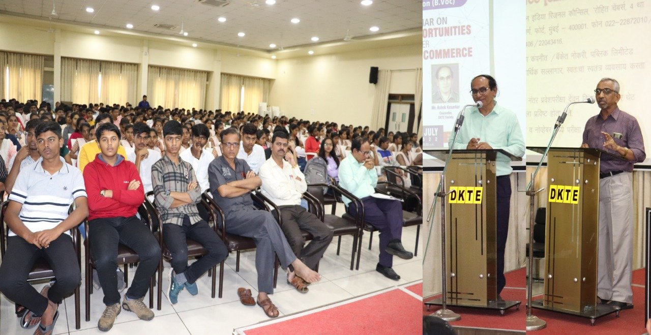 इचलकरंजी येथील डीकेटीईच्या टेक्स्टाईल अॅन्ड इंजिनिअरींग इन्स्टिट्यूटमध्ये ‘१२ वी आर्टस् व कॉमर्स शिक्षणानंतर विद्यार्थ्यांना असणा-या करिअरच्या संधी’ व ‘बी व्होकेशनल कोर्सेस करिअर निवडीचा उत्तम पर्याय‘ या विषयावर तज्ञांचे चर्चासत्र संपन्न झाले.या चर्चासत्रासगंगामाई ज्युनिअर कॉलेज, गोविंदराव कॉलेजच्या १२ वी आर्टस् व कॉमर्स विद्यार्थ्यांचा उत्स्फूर्त प्रतिसाद मिळाला.