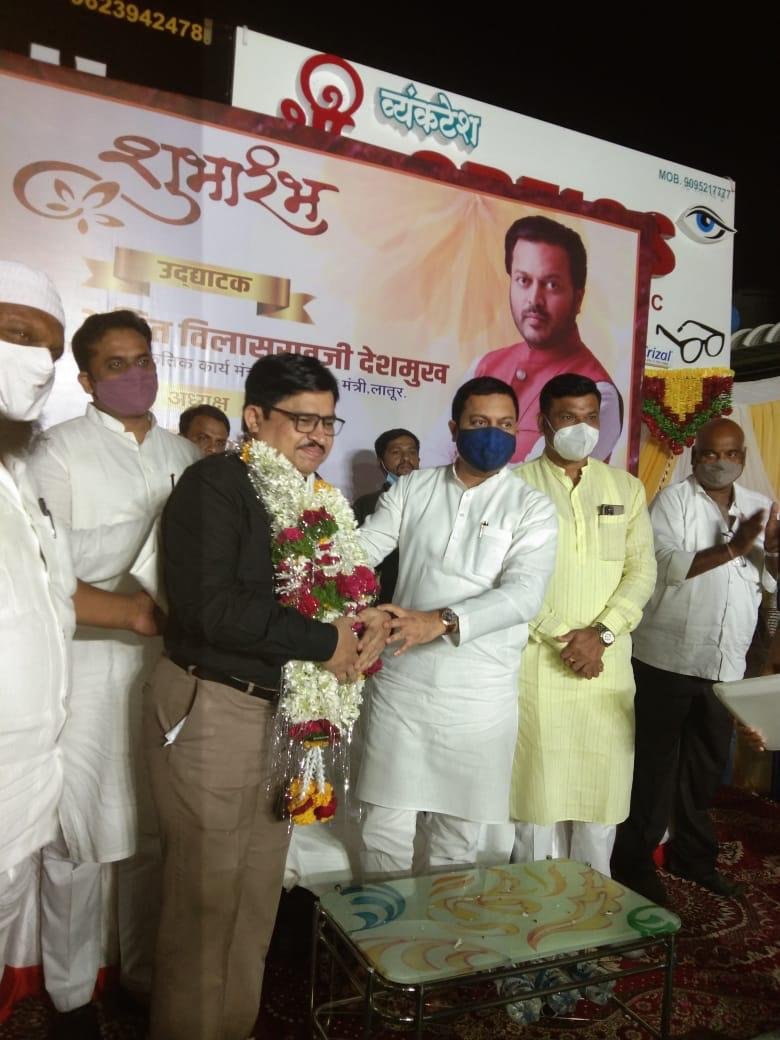 लातूर –दिनांक १९/१०/२०२१ रोजी राज्याचे वैद्यकिय शिक्षण व सास्कृतिक मंत्री नामदार अमित विलासराव देशमुख यांच्या हस्ते डाॅ रमेश भराटे यांचा सत्कार करण्यात आला.मागील दोन वर्षापासुन देशाला कोराेना आजारांने विळखा धातला होता ,परंतु देशांतील व राज्यातील डाॅक्टर,नर्स व ईतर कर्मचारी यांनी अहोरात्र मेहनत करुन लोकांचे प्राण वाचवण्याचे महान कार्य केले आहे .अशा डाॅकटरंना आमचे नेहमीच सहकार्य व पाठबळ असते असे गौरवोदगार नामदार अमित देशमुख यांनी काढले .