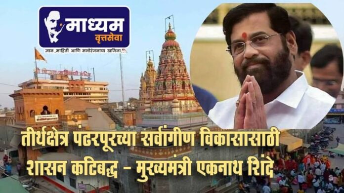 पंढरपूर, दि. १७( वृत्तसेवा )- : आषाढी एकादशीनिमित्त राज्यातील लाखो भाविक विठुरायाच्या दर्शनासाठी पंढरपुरात दाखल झाले असून पंढरपूर नगरी भक्तीरसात न्हाऊन निघाली आहे. वारकऱ्यांना सर्व सोयी सुविधा उपलब्ध करून देण्यासाठी आणि पंढरपूर तीर्थक्षेत्र सर्वांगीण विकासासाठी शासन कटिबद्ध आहे, अशी ग्वाही मुख्यमंत्री एकनाथ शिंदे यांनी दिली.