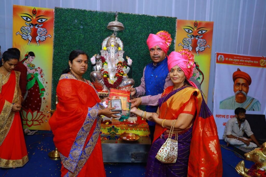 आ. अभिमन्यू पवार दांपत्यांच्या हस्ते प्रातिनिधिक स्वरूपात चांदीच्या श्रीच्या प्रतिमांचे वितरण