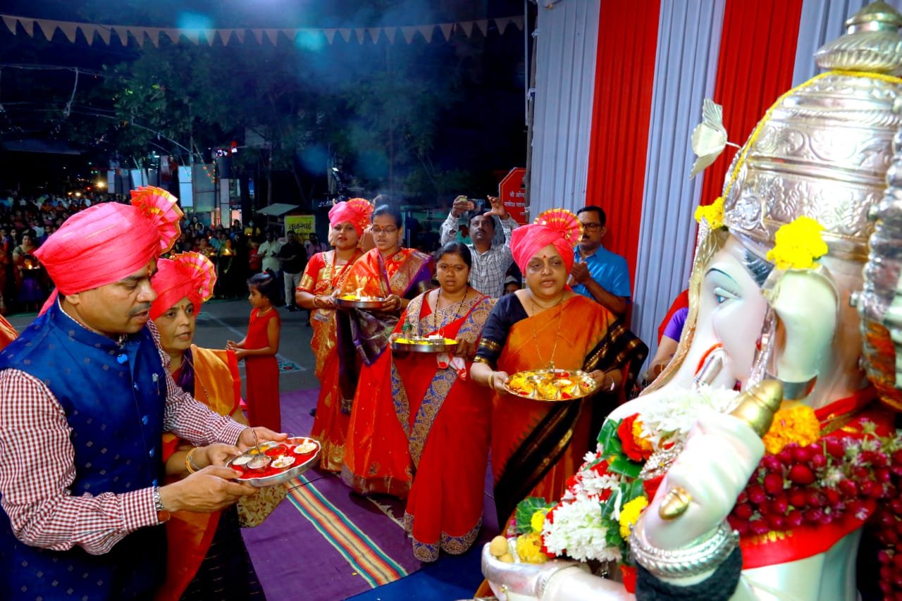 याप्रसंगी विश्वस्त मंडळाचे अध्यक्ष उदयकुमार चौंडे, चंद्रशेखर बसपूरे , भीमाशंकर सिद्धेश्वरे , गणेशोत्सव २०२२ चे मंडळाचे अध्यक्ष विलास गोंदकर, डॉ. संजय वारद , रवी समशेट्टे, महेश कोळे, गोविंद झिपरे, रजनी बनभैरू, अश्विनी कनडे , अर्चना हालकुडे , दीपिका कनडे, पल्लवी पाटील, , रुपाली गोंदकर, आदिती व्यास यांसह ८०० महिलांनी उत्स्फूर्तपणे सहभाग घेतला. ————————-