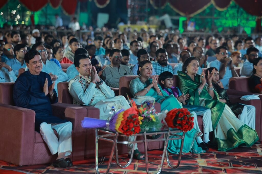 .यावेळी माजी मंत्री सहकार महर्षी दिलीपराव देशमुख, माजी मंत्री आमदार अमित विलासराव देशमुख, खासदार डॉ. शिवाजी काळगे, विलास सहकारी साखर कारखान्याचे चेअरमन वैशालीताई विलासराव देशमुख, ट्वेंटीवन ॲग्रीच्या संचालिका सौ. अदितीताई अमित देशमुख, डॉ. सविता शिवाजी काळगे, लातूर जिल्हा काँग्रेस कमिटीचे अध्यक्ष अभय साळुंके, विलास को-ऑपरेटिव बँकेचे चेअरमन किरण जाधव, व्हा. चेअरमन समद पटेल, आबासाहेब पाटील, यशवंतराव पाटील, विजय देशमुख, अशोक गोविंदपूरकर यांची उपस्थिती होती.दिवाळीच्या या सांगीतिक संध्येला लातूरकरांची प्रचंड उपस्थिती लाभली. कुटुंबासह आलेल्या नागरिकांनी उत्साहाने टाळ्यांच्या कडकडाटात प्रत्येक सुरेल प्रस्तुतीचा आस्वाद घेतला.