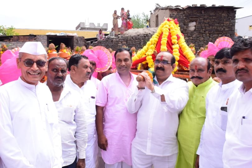 चंद्रकांत साळुंके यांच्या घरून निघणाऱ्या पालकी (छबिना) मिरवणुकीचा शुभारंभ खासदार सुधाकरराव शृंगारे यांच्या हस्ते करण्यात आला. यावेळी माजी आमदार बब्रुवान खंदाडे, भाजपाचे जिल्हा उपाध्यक्ष बालाजी पाटील चाकूरकर, अहमदपूर कृषी उत्पन्न बाजार समितीचे माजी सभापती दिलीपराव देशमुख, भाजपाचे तालुकाध्यक्ष शिवाजीराव बैनगिरे, जिल्हा परिषदेचे माजी समाजकल्याण सभापती रोहिदास वाघमारे, पंचायत समितीचे माजी सभापती व्यंकटराव सोनवणे आदी मान्यवरांची प्रमुख उपस्थिती होती तर जनमाता देवीच्या मंदिरातील घटस्थापना आमदार बाबासाहेब पाटील, जेष्ठ नागरिक बन्सीलाल कदम, सहाय्यक पोलीस अधीक्षक निकेतन कदम, पोलीस निरीक्षक बालाजीराव मोहिते, पोलीस उपनिरीक्षक तुकाराम फड, पोलीस उपनिरीक्षक कैलास पाटील, अनिल वाडकर आदींच्या प्रमुख उपस्थितीत गावकऱ्यांच्या व मानकऱ्यांच्या हस्ते करण्यात आली.