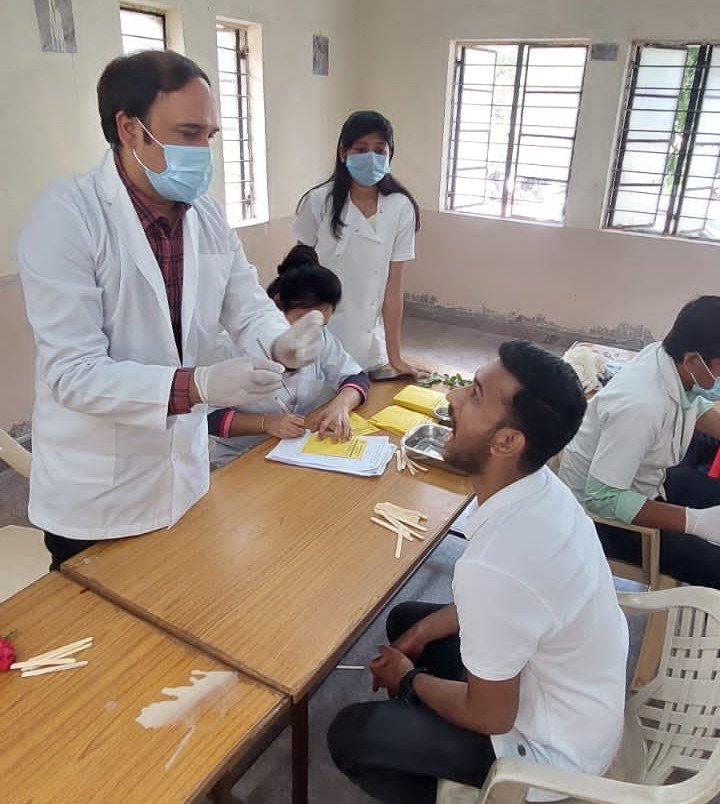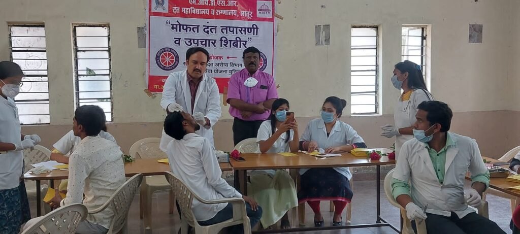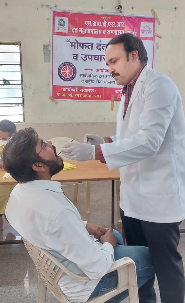 महाविद्यालयीन तरुणांमध्ये दंत व मौखिक आरोग्य या विषयी जागृती निर्माण व्हावी म्हणून मोफत दंत आरोग्य तपासणी शिबिर घेण्यात आले. या मौखिक आरोग्य तपासणी शिबिरात दंत रोग तज्ज्ञांकडून विद्यार्थ्यांची मुख व दंत रोग, मुख कर्करोग, तोंडात उद्भवणारे पांढरे – लाल चट्टे, हिरड्या व त्या सबंधी आजार अशा 256 विद्यार्थी रुग्णांची तपासणी करुन प्रथम दंतोपचार करण्यात आले. तसेच दिर्घ दंत आजाराच्या 63 रुग्णांना पुढील उपचारासाठी एमआयडीएसआर दंत महाविद्यालय, लातूर येथे पाठविण्यात आले.