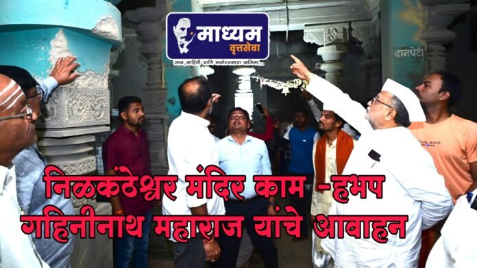 दि.26 सप्टेंबर रोजी निलंगा येथील ग्रामदैवत निळकंटेश्वर मंदिरात शहरातील प्रमुख नागरिकांची बैठक आयोजित करण्यात आली होती त्यावेळी ह.भ.प.गहिनीनाथ महाराज औसेकर बोलत होते प्रथम औसेकर महाराज व माजी मंत्री आमदार संभाजीराव पाटील निलंगेकर यांनी मंदिराची पाहणी केली व पुरातत्व विभागाच्या कर्मचाऱ्यांशी सविस्तर चर्चा केली.