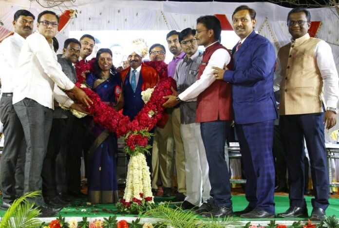 लातूर येथे लातूरचे भूमिपुत्र मुंबई उच्च न्यायालयाचे न्यायमूर्ति श्री शिवकुमार डिगें लातूर जिल्हा वकील मंडल आयोजित सत्कार कार्यक्रमात जय साई मित्र मंडलच्या वतिने फेंटा बाधुन,शाल,भव्य पुष्पहार घालुन सप्त्निक सत्कार करण्यात आला