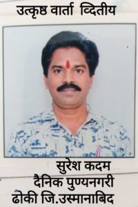 जिल्हा औरंगाबाद येथील प्रतिनिधी विजय चौधरी यांच्या ‘ शेतमाल उद्योगासाठी टाटांना साकडे ‘ या बातमीस अर्जुन मुद्दा यांच्यावतीने जेष्ठ पत्रकार कै.महादप्पा मुद्दा यांच्या स्मरणार्थ ५ हजार रुपये रोख रक्कम, सन्मान चिन्ह प्रमाणपत्र,व्दितीय पुरस्कार दैनिक पुण्यनगरीचे ढोकी जि.उस्मानाबादचे प्रतिनिधी सुरेश कदम यांना ‘ ऊसाचे क्षैत्र वाढले, अतिरिक्त ऊस प्रश्न भेडसावणार ‘या बातमीस अमोल निडवदे यांच्या वतीने जेष्ठ पत्रकार कै. नागनाथअण्णा निडवदे यांच्या स्मरणार्थ तीन हजार रुपये रोख सन्मान चिन्ह व प्रमाणपत्र,दैनिक दिव्य मराठीचे उमरगा प्रतिनिधी प्रदीप भोसले यांच्या ‘आपत्तीत संधी शोधत धरली प्रगतीची कास ‘ या बातमीस स्वामी विवेकानंद महाविद्यालय वृत्तपत्र विद्या विभाग यांच्यावतीने तीन हजार रुपये रोख, सन्मान चिन्ह ,