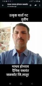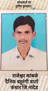, *तृतीय पुरस्कार* जळकोट जि.लातूर येथील दैनिक यशवंतचे प्रतिनिधी माधव होनराव यांच्या ‘ संगीता दामरे यांच्या यशाला मेहनतीची किनार,नौकर राहून पत्नीला शिकवले,पत्नी बनली सरकारी कर्मचारी’ या बातमीस पत्रकार दयानंद बिरादार यांच्यावतीने कै.नागनाथ बिरादार यांच्या स्मरणार्थ दोन हजार रुपये ,सन्मानचिन्ह व प्रमाणपत्र देण्यात येणार आहे.