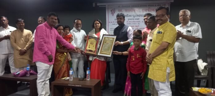 प्रारंभी स्व.लक्ष्मीकांत हलकीकर यांच्या प्रतिमेचे पूजन करण्यात आले.यावेळी पारधेवाडी येथील सामाजिक कार्यकर्त्या सौ.छाया सतीश काकडे यांना “स्व.लक्ष्मीकांत हलकीकर स्मृती सेवा गौरव पुरस्कार” ना.बनसोडे यांच्या हस्ते देण्यात आला.५००१ रु.रोख ,सन्मानपत्र व मानचिन्ह असे या पुरस्काराचे स्वरूप आहे.