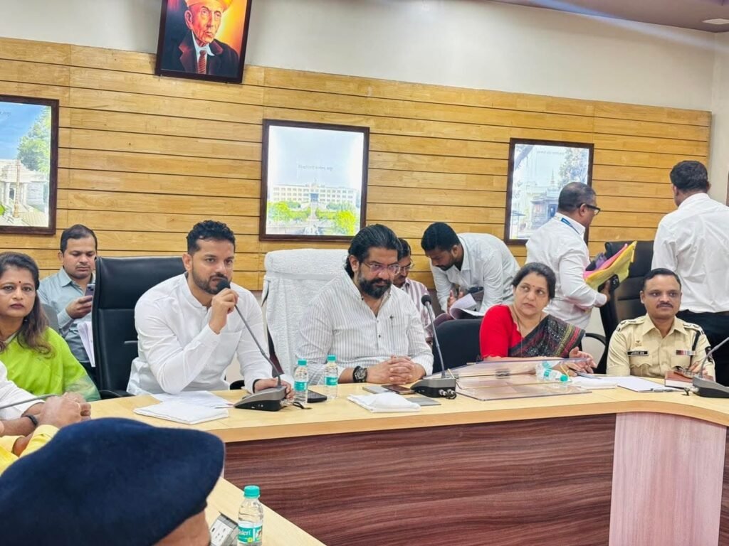 शहर जिल्हा भाजपच्या वतीने जिल्हाध्यक्ष अजित पाटील कव्हेकर यांनी लातूर शहरातील लिंगायत स्मशानभूमी, स्टॅच्यू ऑफ नॉलेज, अंतर्गत भुयारी गटार योजना स्व.विलासराव देशमुख मार्ग, शहरातील बंद पथदिवे व त्यांची दुरुस्ती, अमृत योजना टप्पा २, लोकशाहीर अण्णाभाऊ साठे सभागृह, नाट्यगृह, शादिखाना यासह जिल्हा रुग्णालयांच्या कामांबाबत पालकमंत्री शिवेंद्रराजे भोसले यांनी मनपा प्रशासनाची बैठक घेऊन आढावा घेण्यात यावा अशी मागणी केली होती. यानुसार पालकमंत्री शिवेंद्रराजे भोसले यांनी शासकीय विश्रामगृहाच्या सभागृहात आयोजित केलेल्या आढावा बैठकीत पालकमंत्री बोलत होते.