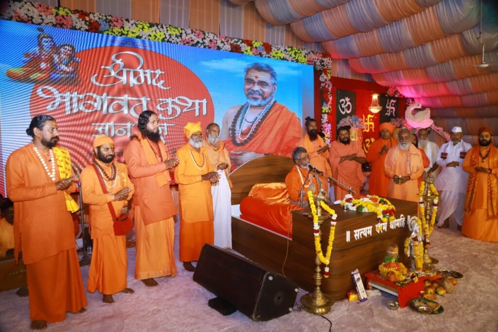 श्री राधाकृष्ण सत्संग समितीच्या वतीने लातूर येथील पंचमुखी हनुमान मंदिर परिसरात विद्यानंदजी महाराज यांच्या श्रीमद् भागवत कथा ज्ञानयज्ञाचे आयोजन करण्यात आले असून शनिवारी या कथेची पूर्णाहुती झाली. याप्रसंगी पूजनीय बाबा बोलत होते