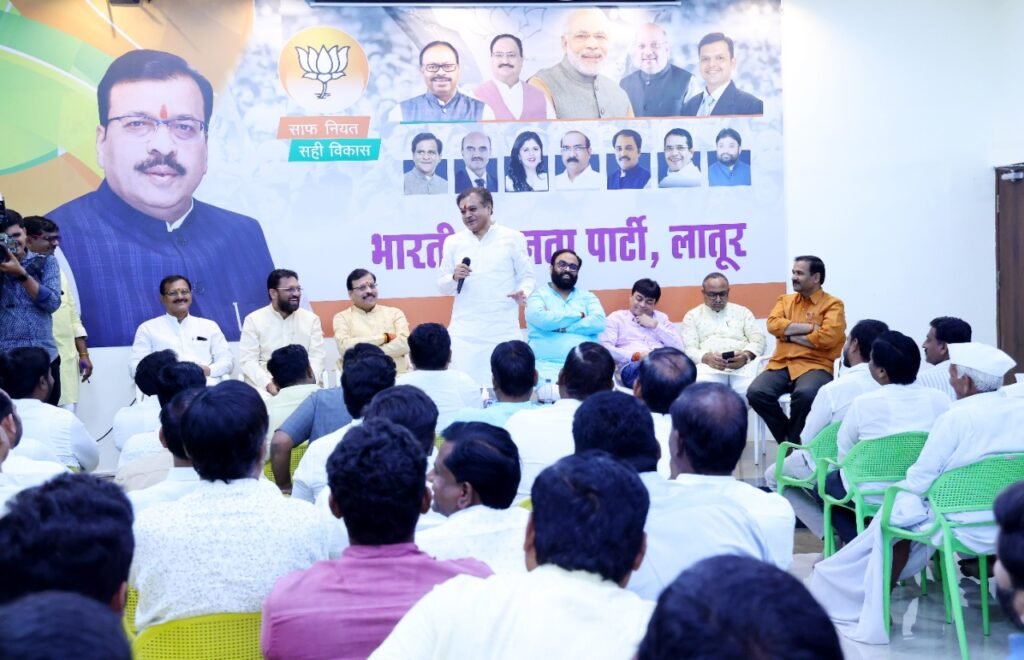 मराठवाडा शिक्षक मतदार संघातील भाजपा व मित्र पक्षाचे अधिकृत उमेदवार प्रा. किरण पाटील यांच्या प्रचार नियोजनाची बैठक भाजपाच्या लातूर येथील संवाद कार्यालयात झाली त्यावेळी आ. राणा पाटील बोलत होते यावेळी भाजपाचे जिल्हाध्यक्ष आ. रमेशआप्पा कराड, प्रदेश सचिव अरविंद पाटील निलंगेकर, प्रदेश प्रवक्ते प्रवीण घुगे, प्रदेशाचे शैलेश लाहोटी, शहर जिल्हाध्यक्ष गुरुनाथ मगे, जिल्हा सरचिटणीस विक्रमकाका शिंदे यांची प्रमुख उपस्थिती होती. प्रारंभी लातूर जिल्हा भाजपाच्या वतीने जिल्हाध्यक्ष आ. रमेशआप्पा कराड यांनी आ. राणा पाटील यांचा शाल, पुष्पगुच्छ आणि विठ्ठलाची मूर्ती भेट देऊन सत्कार केला.