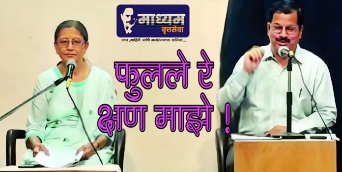 विविध क्षेत्रातील उपस्थित मान्यवर रसिक; साहित्यिक रजनीश जोशी आणि प्रख्यात गायिका विद्याताई लिमये यांच्या संवादी सादरीकरणावर अक्षरशः झुलत होते. शास्त्रीय संगीताच्या अभ्यासक, गायिका विद्या लिमये यांनी स्वतः प्रतिभासंपन्न कवींच्या रचना स्वरबद्ध केल्या होत्या. त्यांच्या नितळ, सुस्पष्ट, रेशमी सुरांनी या सांस्कृतिक कार्यक्रमाला एका वेगळ्या उंचीवर नेले.रजनीश जोशी यांनी ‘प्रेम’ या सूत्राने संहिताबांधणी केली होती.