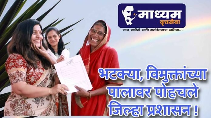 लातूर, दि. 28;( वृत्तसेवा ): -विमुक्त जाती व भटक्या जमातीमधील घटकांना त्यांचा पालावर जावून शासकीय योजनांचा लाभ देण्याचा अभिनव उपक्रम आज लातूर जिल्हा प्रशासनाच्यावतीने राबविण्यात आला. प्रशासनाने आपल्या दारात येवून शासकीय योजनांचा लाभ दिल्याने महाराणा प्रतापनगर ग्रामपंचायत क्षेत्रातील बुऱ्हानगर येथील पालावरील भटक्या विमुक्तांच्या चेहऱ्यावर समाधानाचे हास्य फुलले होते. यावेळी जिल्हाधिकारी वर्षा ठाकूर-घुगे यांच्या हस्ते जवळपास 90 व्यक्तींना विविध लाभांचे वितरण करण्यात आले.