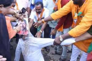 पालकमंत्र्यांच्या प्रतिकात्मक पुतळ्यास