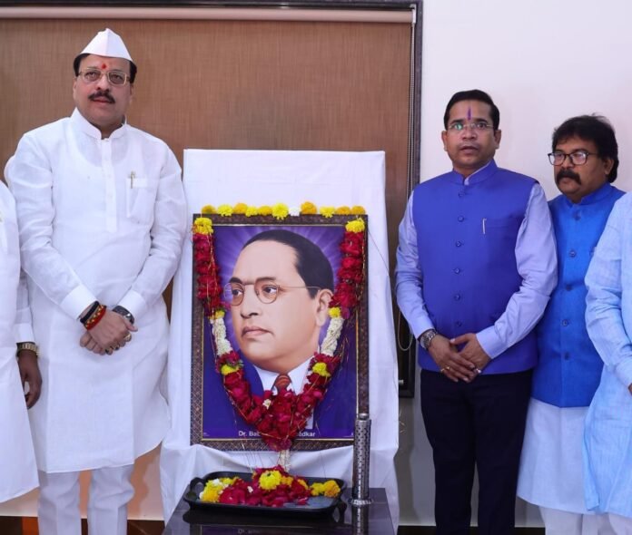 लातूर दि.१४-भारतीय राज्यघटनेचे शिल्पकार महामानव भारतरत्न डॉ. बाबासाहेब आंबेडकर यांच्या जयंती निमित्ताने त्यांच्या प्रतिमेस भाजपाचे जिल्हाध्यक्ष आ. रमेशअप्पा कराड यांनी पुष्पांजली अर्पण करून विनम्र अभिवादन केले.