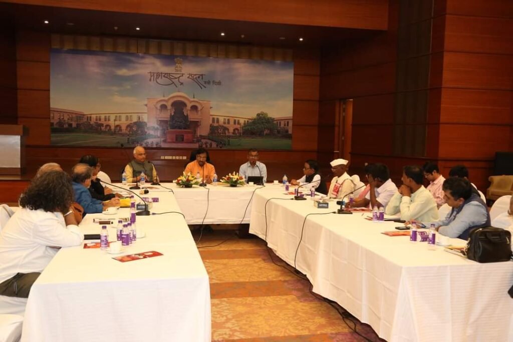 राजधानी स्थित महाराष्ट्र सदनच्या बॅंक्वेट हॉल येथे महाराष्ट्र सांस्कृतिक धोरण पुर्नविलोकन समितीची बैठक सांस्कृतिक कार्य संचालनालयाव्दारे आयोजित करण्यात आली होती. या बैठकीला सांस्कृतिक धोरण पुर्नविलोकन समितीचे अध्यक्ष व सांस्कृतिक कार्य मंत्री सुधीर मुनगंटीवार, कार्याध्यक्ष डॉ. विनय सहस्त्रबुध्दे, सांस्कृतिक कार्य विभागाचे प्रधान सचिव विकास खारगे, संचालक विभिषण चावरे तसेच समितीचे अशासकीय सदस्यांसह वरिष्ठ अधिकारी उपस्थित होते.