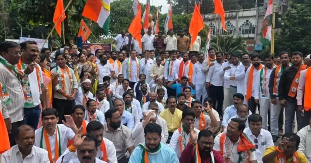 शहरातील महात्मा गांधी चौकात झालेल्या या आंदोलनात काँग्रेस,राष्ट्रवादी काँग्रेस (शरद पवार), काँग्रेस आणि शिवसेना (उद्धव बाळासाहेब ठाकरे) या महाविकास आघाडीतील तिन्ही पक्षांचे नेते,सामाजिक कार्यकर्ते,पदाधिकारी मोठ्या संख्येने उपस्थित होते.*कायद्यावर गंभीर आक्षेप*महाविकास आघाडीच्या नेत्यांनी हा कायदा म्हणजे “काळा कायदा” असून तो लोकशाहीच्या विरोधात असल्याचे म्हटले आहे.