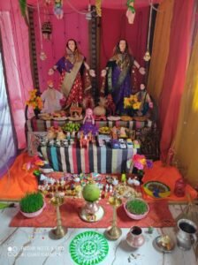 त्याअनुषंगाने,सोमवारी पूजन करण्यात आले.कोरोना नियमावलीचे पालन करीत गौरींचे स्वागत झाले आहे.नैवेद्य दाखवून पूजन करण्यात आल्याने महिलांमध्ये ऊर्जेचा स्ञोत म्हणावे लागेल असेच कांही महिलावर्गांनी प्रतिक्रिया दिल्या आहेत.