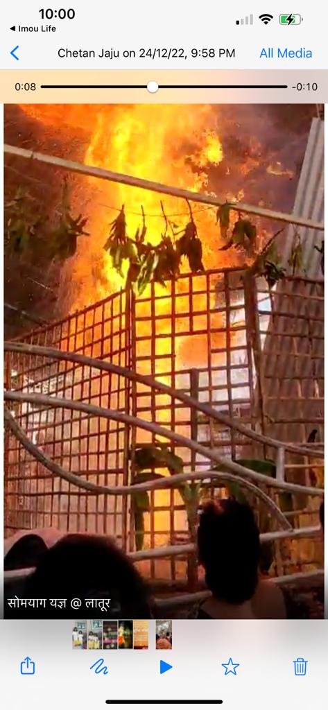 लातूर/ प्रतिनिधी: येथील बालाजी मंदिर परिसरात सुरू असणाऱ्या सर्वस्तोमोतीरात्र महासोमयागात जिज्ञासुंची गर्दी पहावयास मिळत आहे. सूर्योदयापासून सूर्यास्तापर्यंत अबालवृद्ध दर्शन करण्यासाठी येत असून अध्यात्मा सोबतच यज्ञ ही संकल्पना समजून घेणाऱ्यांची संख्या यात अधिक आहे.यात तरुणांची संख्या अधिक असून शेजारील राज्यातुनही मोठ्या संख्येने भक्त महासोमयागासाठी दाखल झाले आहेत. दि.२३ ते २८ डिसेंबर या कालावधीत हा सोमयाग संपन्न होत आहे.यागाच्या तिसरे दिवशी सूर्योदयापासून सुर्यास्तापर्यंत धार्मिक विधी व हवन संपन्न झाले.यात सकाळी ८ वाजता,१० वाजता आणि सायंकाळी ५ वाजता प्रवर्ग्य हा हवनाचा विधी संपन्न झाला.या हवनात मंत्रोच्चाराच्या माध्यमातून प्रज्वलित होणारा अग्नी,त्याची ३० फुट उंच उसळणारी ज्वाला पाहण्यासाठी सभामंडपात भक्त आणि अभ्यासकांनी गर्दी केली होती.