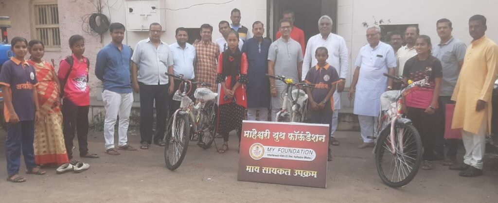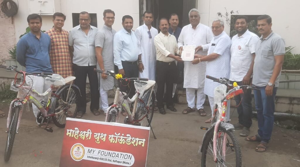 माहेश्वरी युथ फौंडेशनच्या वतीने सामाजिक व धार्मिक कार्यात पुढाकार घेतला जात़ो.यासह विविध विधायक उपक्रम देखील सातत्याने राबवण्यात येतात.याच अनुषंगाने माय सायकल उपक्रमांतर्गत समाजातील गरीब, गरजू विद्यार्थ्यांना सायकल प्रदान करण्यात येतात.घरची परिस्थिती अत्यंत हालाखीची असूनही अभ्यासाबरोबरच कबड्डी,खो -खो खेळात चांगली कामगिरी करण्यासाठी काही विद्यार्थीनी धडपड करत आहेत.त्यांना या कार्यासाठी पाठबळ मिळावे ,या उद्देशाने माहेश्वरी युथ फौंडेशनच्या वतीने गणेशचतुर्थीचे औचित्य साधून प्रांजल पोवार ,जुबेन मुल्ला , श्रध्दा खामकर या खेळाडूंना मान्यवरांच्या हस्ते सायकल प्रदान करण्यात आल्या.