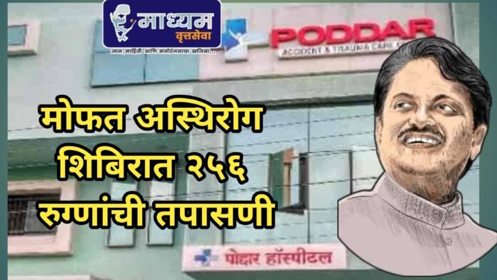 पोद्दार हॉस्पिटलच्या वतीने आयोजित मोफत अस्थिरोग शिबिरात २५६ रुग्णांची तपासणी