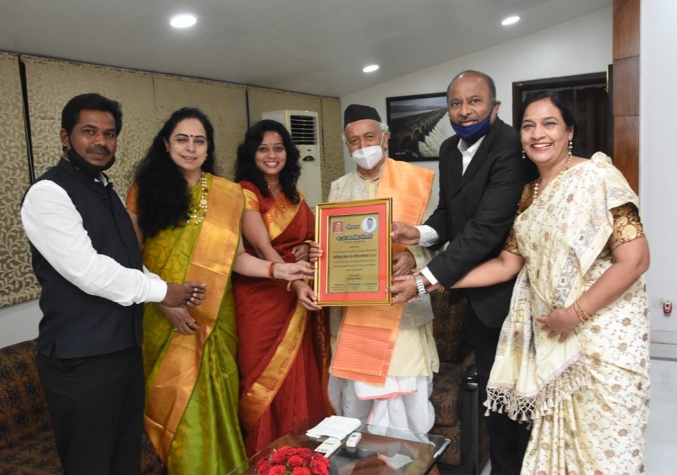 महाराष्ट्र राज्याचे माजी विशेष पोलिस महानिरीक्षक डॉ. विठ्ठलराव जाधव यांच्या मार्गदर्शनाखाली शांतीदुत परिवारच्या शिष्टमंडळाने राज्याचे राज्यपाल भगतसिंह कोश्यारी यांची स्वातंत्र्यदिनाचे औचित्य साधुन रविवारी (ता.१५) रोजी राजभवन येथे भेट घेतली. यावेळी सामाजिक कार्याविषयी सखोल चर्चा झाली. राज्यपालांनी शिष्टमंडाळातील प्रत्येक सदस्यांना वैयक्तिक चर्चा करून सामाजिक कार्याविषयी माहिती घेतली. शांतीदुत परिवारच्या वतीने महाराष्ट्र राज्यासह देश-विदेशातील अनेक ठिकाणी चालविण्यात येणाऱ्या रक्तदान, वृक्षारोपण, गरजुंना मदत, युवक व शेतकऱ्यांना मार्गदर्शन आदी उपक्रमाचे राज्यपालांनी कौतुक केले. यावेळी राज्याचे माजी विशेष पोलिस महानिरीक्षक डॉ.विठ्ठलराव जाधव व शांतीदुत परिवारच्या संस्थापक अध्यक्षा सौ. विद्याताई जाधव यांच्या हस्ते स्मृतीचिन्ह देऊन राज्यपालांचा सत्कार करण्यात आला. यावेळी बडवे इंजिनिअरींग प्रा. लि.चे संचालिका तथा शांतीदुत परिवारच्या उपाध्यक्षा सौ. सुप्रीया बडवे यांची महिला उद्योजक विकास परिषदेच्या राष्ट्रीय अध्यक्षपदी निवड झाल्याने व त्यांच्या सामाजिक कार्यातील योगदानाबद्दल राज्यपालांनी सत्कार केला. यावेळी संघटनेच्या राष्ट्रीय अध्यक्षा सौ. तृशाली जाधव यांनी अॅक्युमन या नविन शिक्षणपध्दतीविषयी राज्यपालांना शैक्षणिक संच भेट देऊन चर्चा केली. यावेळी मायक्रोकॉमचे संचालक तथा शांतीदुत युवा आघाडीचे प्रदेशाध्यक्ष प्रा. युसुफ मुल्ला यांनी राज्यपालांना ‘ विठ्ठल झालाशी कळस ‘ हा ग्रंथ भेट दिला.