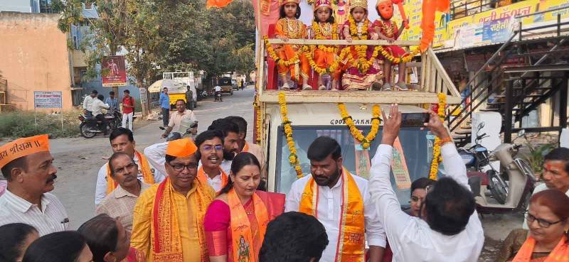 *राम मंदिरमुर्ती स्थापनेच्या पूर्वसंध्येला जूना औसा रोड परिसरात भव्य शोभायात्रा*