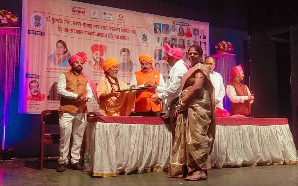 लातूर/प्रतिनिधी ः- लातूर तालुक्यातील चिकलठाणा येथील रहिवाशी असणारे शिदवत्त शंकर भारती यांनी 35 वर्षात पोलीस सेवेत कर्तव्य पार पाडल्यानंतर हिंदू धर्मगुरु दशनाम गोस्वामी आखाड्याच्या माध्यमातून सामाजिक कार्य सुरु केलेले आहे. या कार्याची दखल घेत कोल्हापूर येथे राष्ट्रीय शाहू प्रेरणा पुरस्काराने शिवदत्त भारती यांना सन्मानित करण्यात आलेले आहे. सदर पुरस्कार मिळाल्याबद्दल त्यांचे विविध स्तरातून अभिनंदन होत आहे.