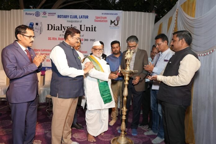 लातूर ; दि.३ (प्रतिनिधी ) – रोटरी क्लब लातूरच्या वतीने आणि आर. के. एस इन्फ्रास्ट्रक्चर प्रा.लि.पुणे या संस्थेच्या सहकार्याने एम.जे. हॉस्पिटलमध्ये डायलिसिस युनिट नाथ पिठाचे पिठाधीश सद्गुरु हभप गहिनीनाथ महाराज औसेकर यांच्या हस्ते नुकतेच लोकार्पित करण्यात आले.