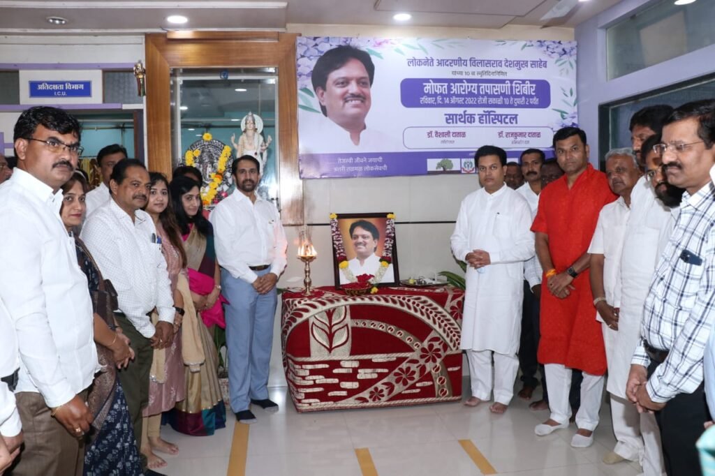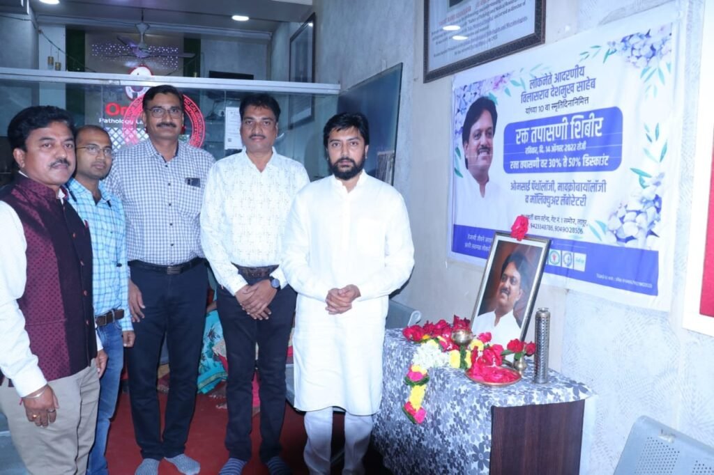 माजी मुख्यमंत्री, माजी केंद्रीय मंत्री, लोकनेते आदरणीय विलासराव देशमुख साहेब यांच्या १० व्या स्मृतिदिनानिमीत्त लातूर व परीसरात इंडीयन मेडीकल असोशिएशन, लातूर, निमा, इंडीयन डेंटल, होमीओेपॅथी असोशिएशन आणि विलासराव देशमुख फांऊडेशन यांच्या संयुक्त विद्यमाने रवीवार दि. १४ ऑगष्ट २०२२ रोजी महाआरोग्य शिबीर घेण्यात आले. या शिबीराच्या माध्यमातून जवळपास ३०० पेक्षा अधिक रूग्णालयात रुग्णांची मोफत तपासणी व उपचार करण्यात आले, काही सुविधा सवलतीच्या दरात उपलब्ध करून देण्यात आल्या. यासाठी आज सकाळ पासनूच रूग्णालयात रूग्णांच्या रांगा लागल्या होत्या. हजारो रूग्णांना या महाआरोग्य शिबीराचा लाभ झाला आहे.