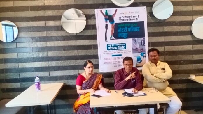 लातूर : रत्ननिधी चॅरिटेबल ट्रस्ट, मुंबई व रोटरी क्लब , लातूर परिवार यांच्या संयुक्त विद्यमाने दि. १० व ११ मार्च २०२३ रोजी लातूर शहरात जयपूर फूट व हात मोफत वाटप मोजमाप शिबिराचे आयोजन करण्यात आले असल्याची माहिती रोटरी क्लब लातूर मिडटाऊनचे रमेश चिल्ले यांनी गुरुवारी लातुरात पत्रकारांशी बोलताना दिली.
