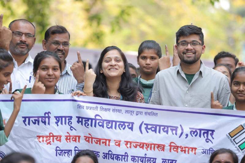 लोकसभा सार्वत्रिक निवडणुकीत मतदानाची टक्केवारी वाढविण्यासाठी जिल्हा निवडणूक अधिकारी कार्यालयामार्फत स्वीप उपक्रम राबविण्यात येत आहे. या उपक्रमांतर्गत लातूर येथे आयोजित महिला मतदार जनजागृती रॅलीच्या समारोप प्रसंगी दयानंद महाविद्यालयाचे प्रा. डॉ. संदिपान जगदाळे यांनी मतदार जागृतीचा पोवाडा सादर केला. तसेच विद्यार्थ्यांनी पथनाट्याद्वारे मतदानाचे महत्व पटवून दिले.