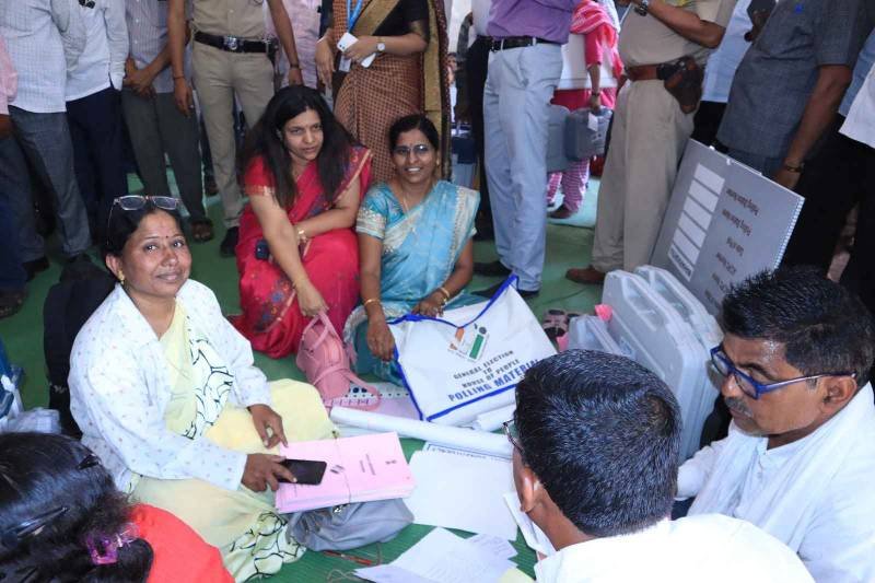 लातूर शहर विधानसभा मतदारसंघ क्षेत्रातील मतदान साहित्य वाटप शासकीय महिला निवासी तंत्र निकेतन येथे करण्यात आले. याठिकाणी सुरु असलेल्या कामकाजाची पाहणी करून जिल्हाधिकारी श्रीमती ठाकूर-घुगे यांनी मतदान पथकातील अधिकारी, कर्मचारी यांच्याशी संवाद साधला. निवडणूक सामन्य निरीक्षक निरंजन कुमार यांनीही याठिकाणी भेट देवून कामकाजाची माहिती घेतली. सर्व मतदान पथके मतदान केंद्रांवर रवाना झाली.